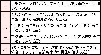 | ■登録の要件(廃棄物の種類に応じて次に掲げる施設を有すること)
